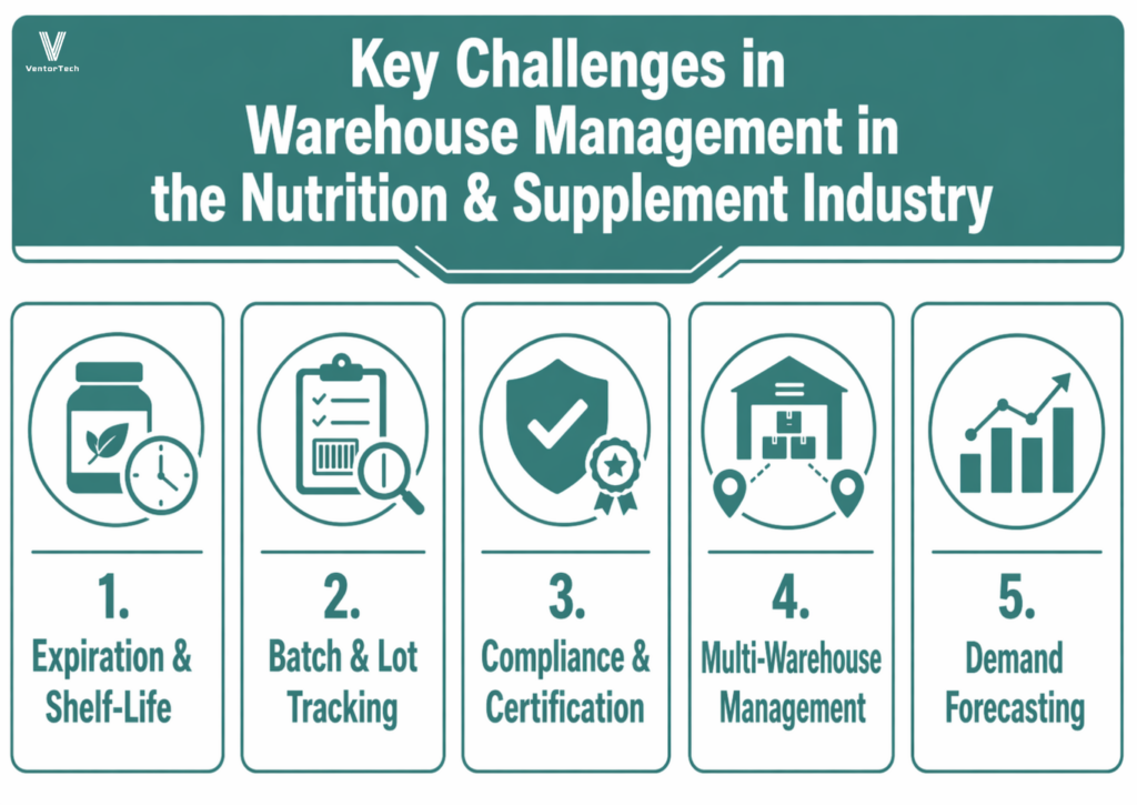 Pagrindiniai sandėlio valdymo iššūkiai mitybos ir maisto papildų pramonėje
