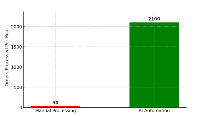 - Dirbtiniu intelektu paremta automatizacija gali tvarkyti didėjantį užsakymų kiekį neįdarbinant papildomų darbuotojų.