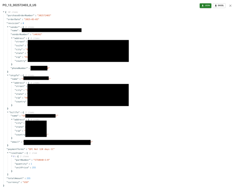 - Išskiria struktūrizuotus duomenis, tokius kaip užsakymo numeriai, kainos, datos, tiekėjai ir prekių informacija.