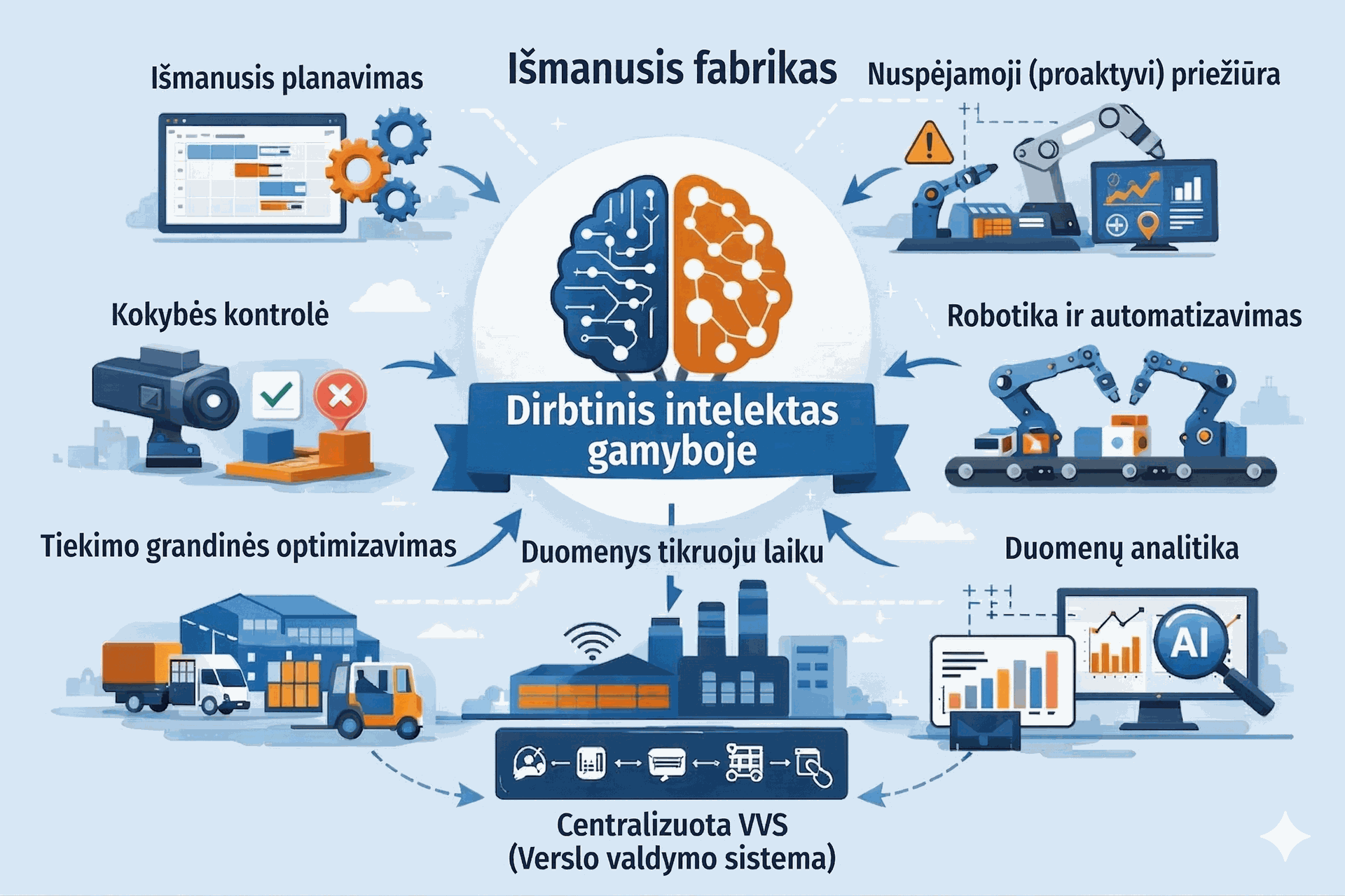 Dirbtinio intelekto technologijos sparčiai keičia gamybos sektorių. Įmonės, kurios pradeda skaitmenizaciją šiandien, rytoj turės aiškų konkurencinį pranašumą.