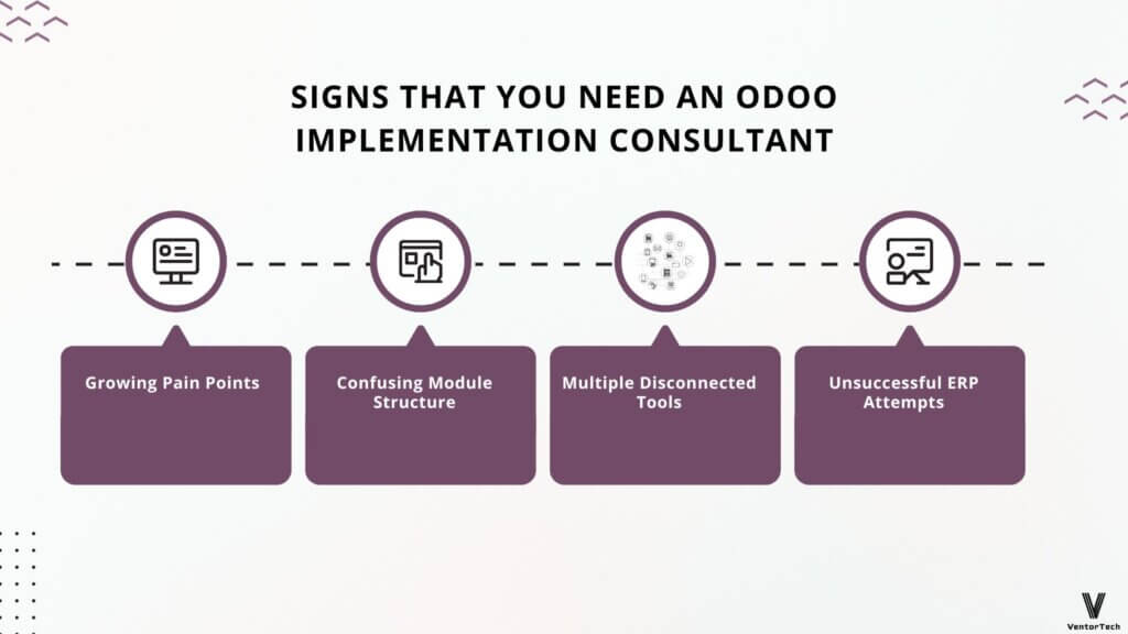 Diegimo konsultantai yra būtini beveik visoms įmonėms, kurios vykdo „Odoo“ pagrįstą verslo transformaciją. Tačiau jei abejojate, verta peržiūrėti pagrindinius ženklus, kurie rodo, kad jums reikalingas konsultantas.
