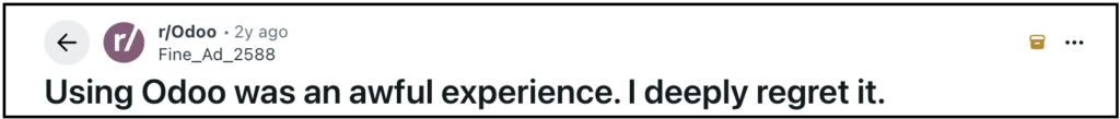 „Ne visi Odoo partneriai tinkamai konsultuoja klientus – kai kurie gali per daug reklamuoti savo paslaugas arba nuvertinti sudėtingumą. Įmonės turėtų pirmiausia pasikonsultuoti su patyrusiais Odoo konsultantais, kad gautų realias kainas ir terminus,“ – pažymi vienas vartotojas, pridurdamas: